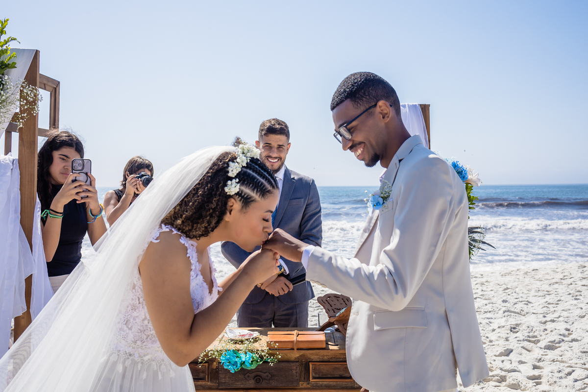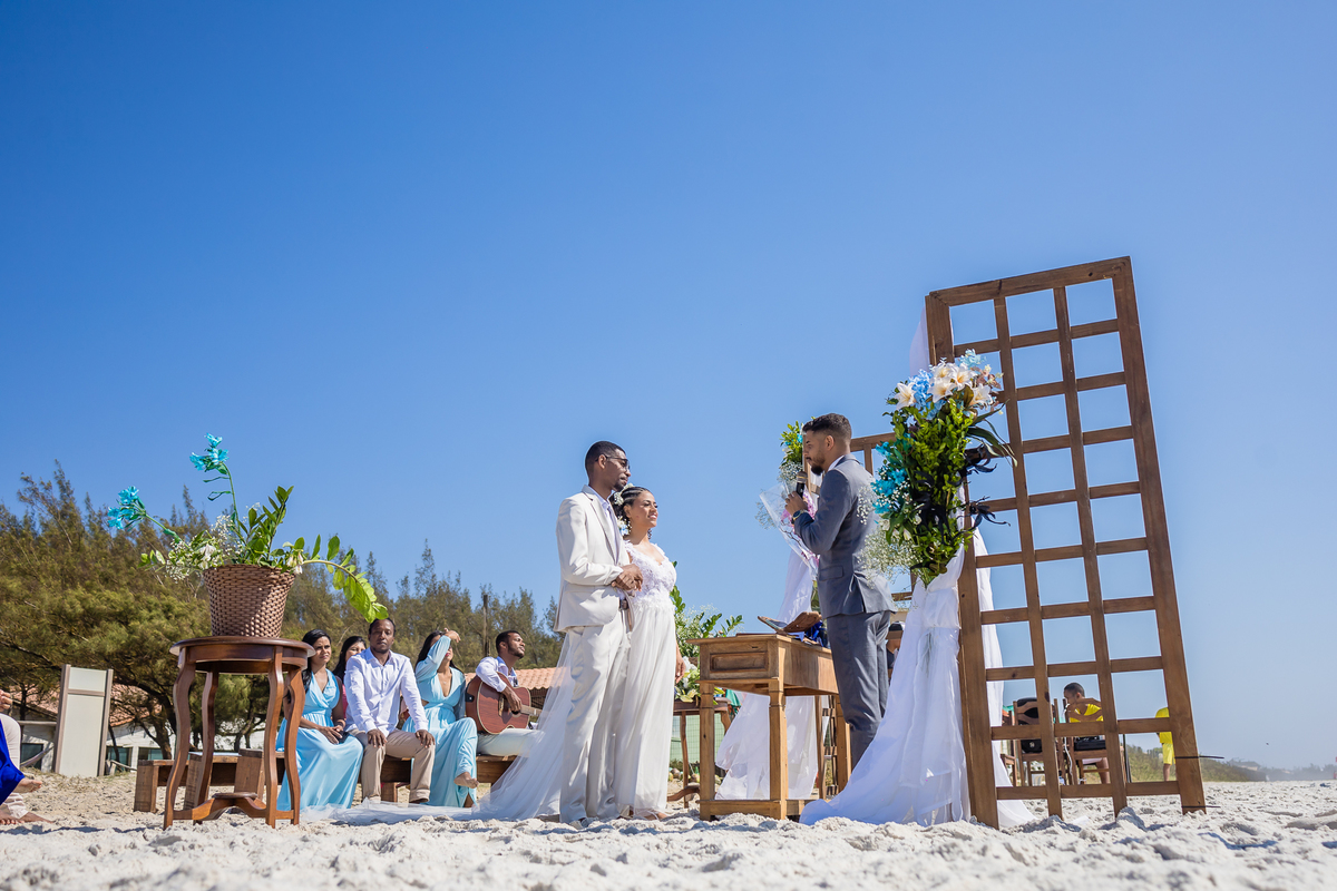 A Lilian e o Cleiton são pessoas sensacionais, ela de São Paulo, ele do Rio de Janeiro, e decidiram que queria se casar na praia, e escoheram a Praia do Foguete para sua cerimonia. Desde nossa primeira conversa sentimos uma energia muito boa e ficamos maravilhados com eles, ficamos mega felizes em ser os escolhidos para ser os fotógrafos do casamento deles!