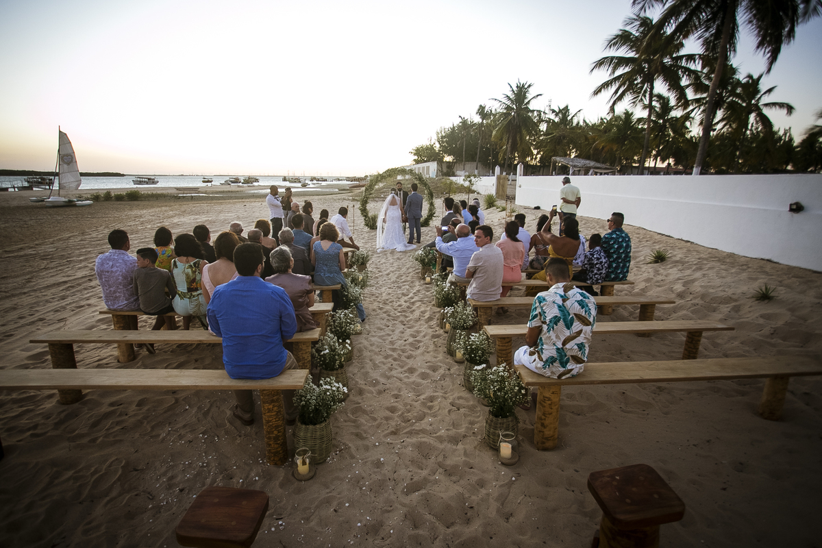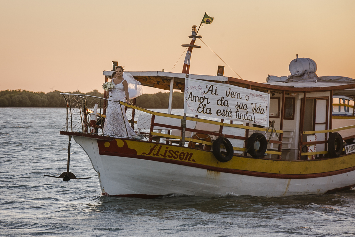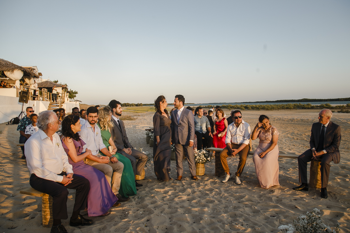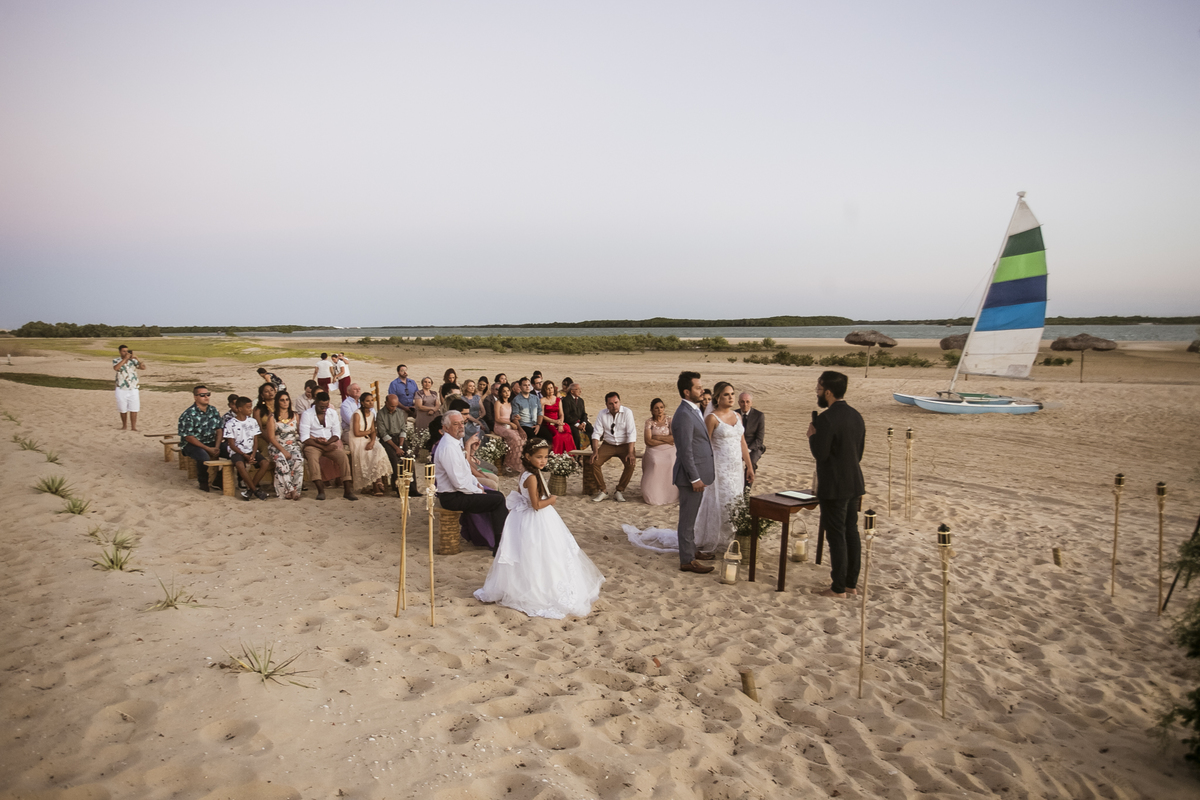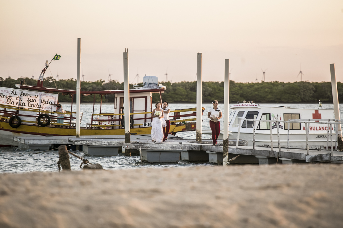 A cerimonia foi incrível, cheia de surpresas e muita emoção, a noiva chegou de barco (isso mesmo) Galinhos fica em uma península de areia e o acesso é feito de barco e a Érica chegou em grande estilo (saiu de fininho escondida para que ninguem a visse) e embarcou no outro pier de acesso aos barcos, descendo no pier da Pousada Amagali, que por sinal nos recebeu muito bem e a todos os convidados.
