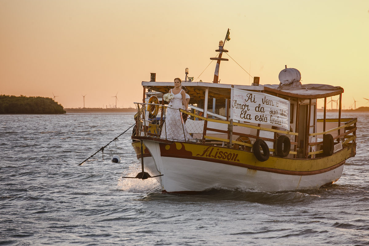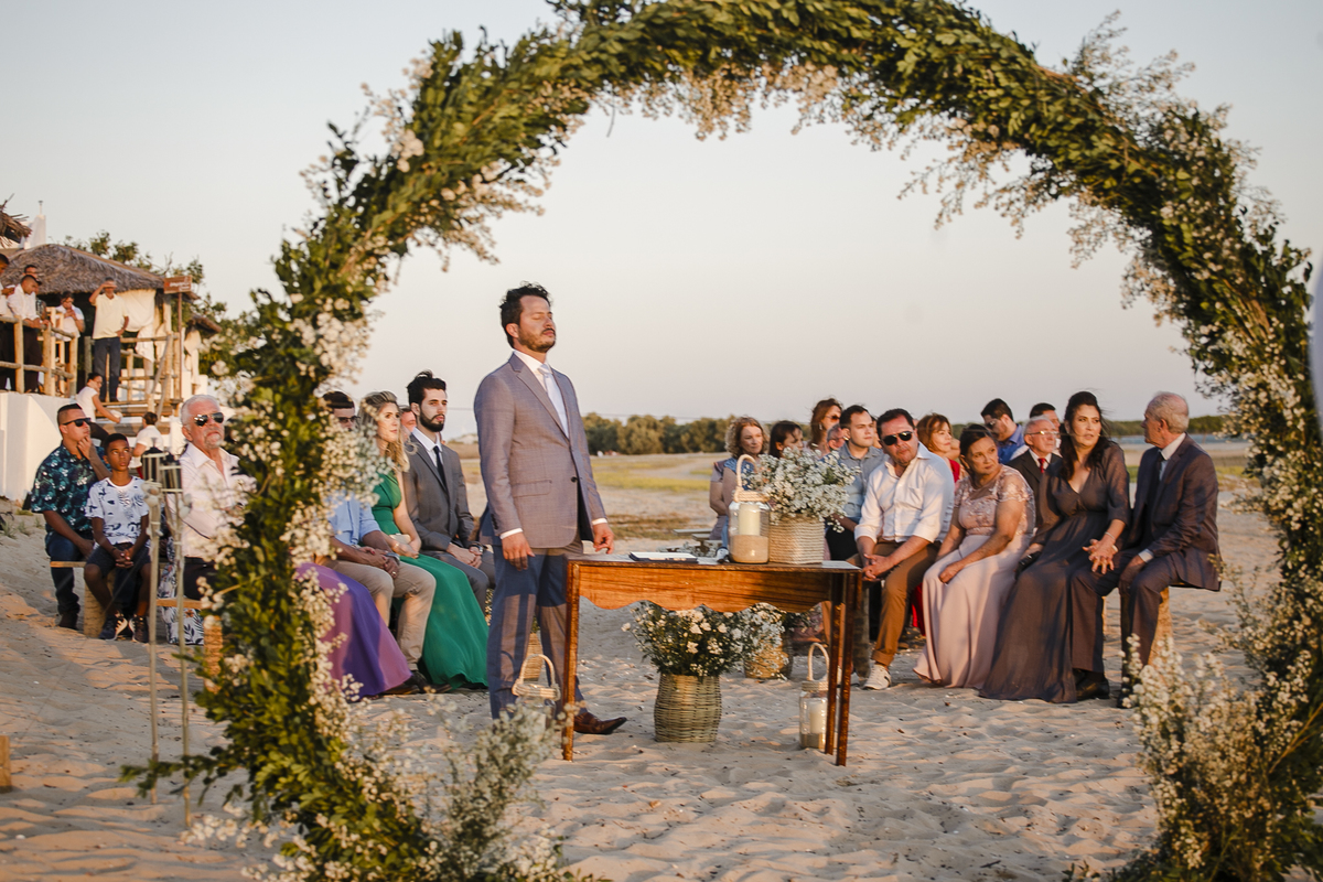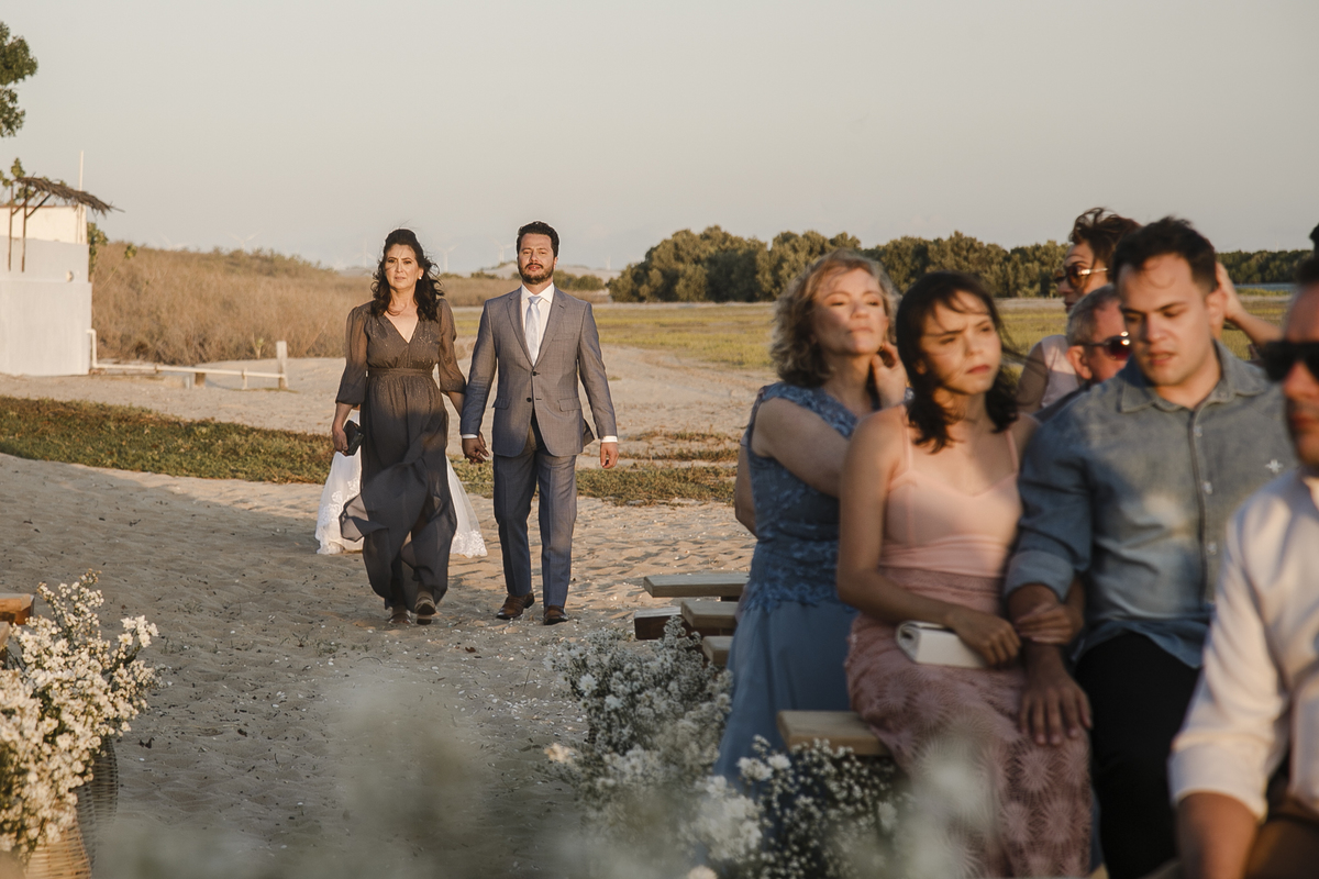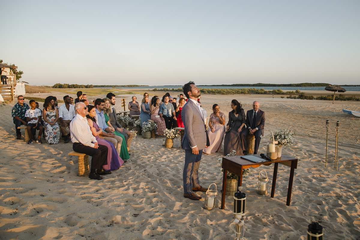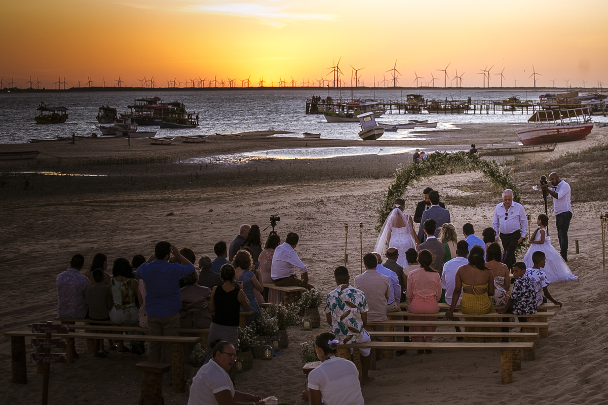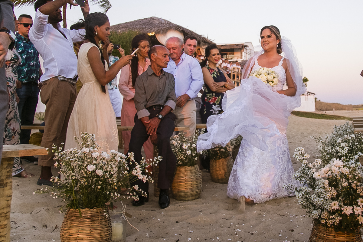 A cerimonia foi incrível, cheia de surpresas e muita emoção, a noiva chegou de barco (isso mesmo) Galinhos fica em uma península de areia e o acesso é feito de barco e a Érica chegou em grande estilo (saiu de fininho escondida para que ninguem a visse) e embarcou no outro pier de acesso aos barcos, descendo no pier da Pousada Amagali, que por sinal nos recebeu muito bem e a todos os convidados.