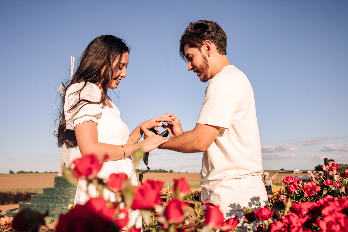 Tudo combinado com o Raphael pra ele fazer o pedido de casamento oficial pra Criz, e fomos até Holambra -SP e realizamos o ensaio deles como um ensaio normal, mas estava ja tudo organizado e só ela que não sabia da surpresa do pedido de casamento... Ao final do ensaio, ja tinha combinado com o @raphael.andrad3 pra eles ficarem de costas um para o outro pra sua amanda não desconfiar de nada, e quando ela sei virou (achando que seria para fazer uma foto) ele ja estava posicionado com o lindo anel.